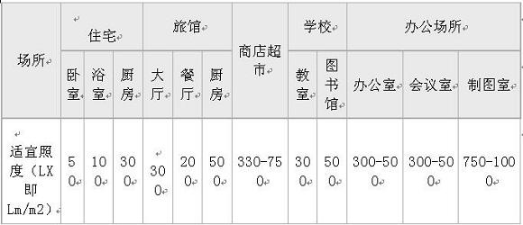 如以下場(chǎng)所的照度水平推薦表