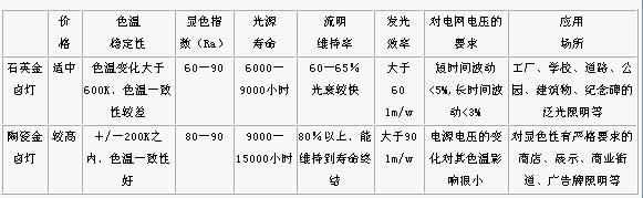 以下是石英金鹵燈和陶瓷金鹵燈相關(guān)參數(shù)的對(duì)比: