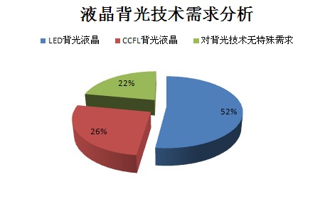 根據(jù)賽迪網(wǎng)對350位網(wǎng)友所作的調(diào)查顯示,在購買顯示器的時候,考慮LED產(chǎn)品的有182位,占52%。依舊會考慮CCFL產(chǎn)品的有91位,占26%,而表示不關(guān)心背光技術(shù)的有77位,占22%。而在1年多以前類似的調(diào)查當(dāng)中,表示會選購LED產(chǎn)品的用戶比例還不足25%。由此,很多廠商甚至已經(jīng)在產(chǎn)品線上實現(xiàn)了全部LED化。而隨著LED產(chǎn)品價格的進一步走低,在未來一到兩年之內(nèi),CCFL產(chǎn)品很有可能會被完全取代。