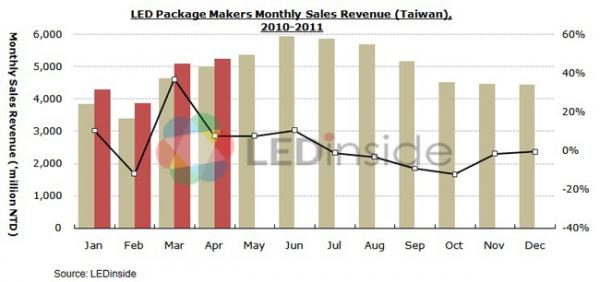 - 四月份臺灣地區(qū)上市柜LED封裝廠營收達到52.5億元
