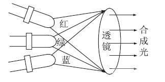 通過控制電路對三基色發(fā)光LED 的亮度進(jìn)行調(diào)節(jié),其通過透鏡后的合成光的顏色和亮度均將可調(diào)。