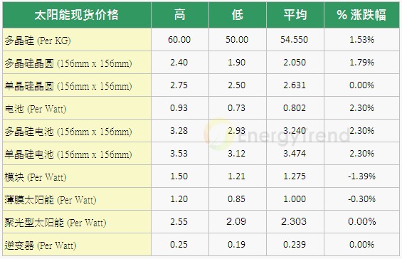 - 上游的多晶硅平均成交價(jià)來到$54.55/kg