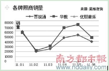 智能電視的興起不僅給量額齊跌的彩電市場(chǎng)染上一抹亮色,也給內(nèi)容端的上位提供契機(jī),數(shù)據(jù)顯示,由于華數(shù)、百視通較早拿到牌照,已在終端市場(chǎng)上形成了雙雄鼎立的局面。