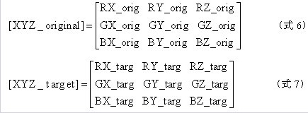 而白色的色坐標Wx,Wy以及白色亮度值WY都可以通過RGB三色的XYZ三刺激值的疊加計算得到: