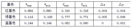 表2 三基色色坐標(biāo)變化的峰值數(shù)據(jù)