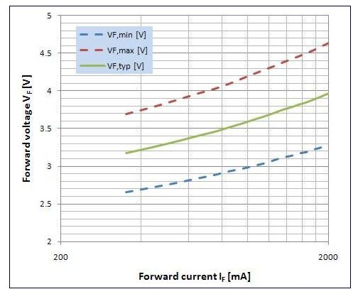 移動(dòng)電話中閃光燈 LED 的高正向電壓和電流以及給定的電池電壓,讓升壓轉(zhuǎn)換器成為最佳的解決方案。驅(qū)動(dòng)大電流時(shí),基于電感的升壓轉(zhuǎn)換器呈現(xiàn)出令人滿意的效率。LED 必須為電流驅(qū)動(dòng),因?yàn)檎螂妷翰粌H僅隨溫度而變化,而且也有其自身的差異。正向電壓的這種變化源自于其生產(chǎn)過程,其變化范圍為 ±20%,請(qǐng)參見圖 1。