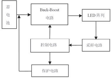 圖2 可知,Buck-Boost 電路將蓄電池電能變換后對LED 陣列供電,采樣電路對流過LED 的電流采樣,將信號傳到控制電路。控制電路分析采樣信息,調(diào)節(jié)Buck-Boost 電路中開關(guān)管的占空比,保證通過LED 電流恒定;當(dāng)電路出現(xiàn)異常時(shí),通過控制保護(hù)電路切斷電源,保證LED 不受損害。一般情況下,LED 驅(qū)動電路必須滿足下列要求: