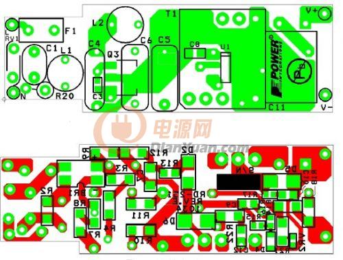 變壓器的次級由D5整流,由C11濾波。選用肖特基勢壘二極管來提高效率。由于C11在AC過零點期間提供能量存儲,因此它的值決定了線電壓頻率輸出紋波的幅值(因采用全波整流而為2 x fL )。因此可根據(jù)所需的輸出紋波來調(diào)整該值。對于所顯示的680 微F值,輸出紋波為正負IO的50%。電阻R17和C10用來衰減高頻振蕩,改善傳導及輻射EMI。