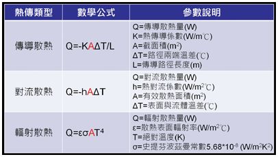 在討論LED熱管理的議題前,首先要先了解基本熱力學(xué)。 基本上散熱有3種方式(表2),分別為“傳導(dǎo)式散熱”、“對(duì)流式散熱”以及“輻射式散熱”,從以上三者的理論公式可以分析出,散熱最主要問題點(diǎn)就在“面積”;另外,由于因輻射在接近室溫情況下散熱量非常小,所以最主要討論的散熱方式在傳導(dǎo)和對(duì)流兩方面。