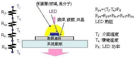 另外,改用越大尺寸的晶粒LED熱阻值就越小。 二為固晶(Die Bonding)方式,由打線(Wire Bonding)改為覆晶(Flip-Chip),傳統(tǒng)LED封裝使用打線方式,但相對(duì)于金屬,藍(lán)寶石傳熱相當(dāng)慢,所以熱源會(huì)從金屬線傳導(dǎo),但散熱效果不佳。 Lumileds公司將晶粒改以覆晶方式倒置于散熱基板上,欲排除藍(lán)寶石不要在熱傳導(dǎo)路徑上,并在幾何結(jié)構(gòu)上增加傳熱面積以降低熱阻。 三為封裝基板采用氧化鋁、氮化鋁、氧化鈹及氮化硼等高導(dǎo)熱以及與LED熱膨脹系數(shù)匹配的材料,進(jìn)而降低整個(gè)散熱基板總熱阻方式。