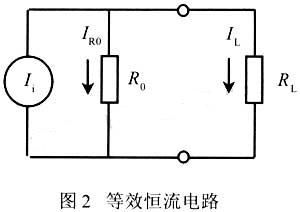 恒流源的工作原理如圖2所示。它由理想電流ii和輸出電阻ro組成。電流源的輸出電流ii=iro+il,如果ro阻值無窮大,此時iro等于零,即負(fù)載rl在任何值時,il=ii。事實上ro不可能等于無窮大。ro越大,il越接近ii,電源的穩(wěn)流性能越好[3]。