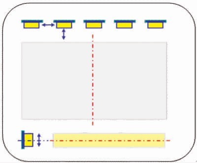 對背光的合理設(shè)計可以提高LED的利用效率。影響LED利用效率的結(jié)構(gòu)參數(shù)主要有3個:LED之間的距離;LED發(fā)光面到LGP入光面之間的距離;LED發(fā)光面和LGP入光面兩者的垂直距離。如圖3所示。只有將三者綜合考慮才能最大化LED的利用效率,從而降低功耗。