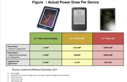 電子書閱讀器長期使用名為EPD的電子紙,而美國高通推出了Mirasol彩色顯示技術(shù)。高通與韓國最大圖書銷售商聯(lián)合開發(fā)的非英語閱讀器Kyobo采用了這種彩色技術(shù)。
