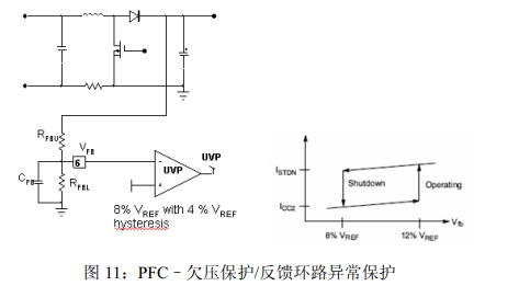 •PFC異常保護,可以在出現(xiàn)PFC異常的情況下,器件停止工作,即使輸入為高線路電壓;