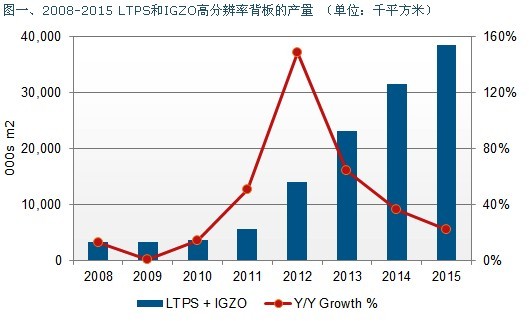 根據(jù)NPD DisplaySearch TFT LCD制程技術(shù)藍(lán)圖趨勢報告(TFT LCD Process Roadmap Report)指出,2012年高移動速率TFT-LCD背板產(chǎn)量預(yù)計(jì)將提高150%,從2011年的560萬平方米迅速發(fā)展到1千410萬平方米。如此高成長的驅(qū)動力主要在于許多五代線和更大的低溫多晶硅(LTPS)產(chǎn)線于2012年開始投入生產(chǎn),且夏普、樂金顯示和三星現(xiàn)有的產(chǎn)線也投入生產(chǎn)金屬氧化物(IGZO)。