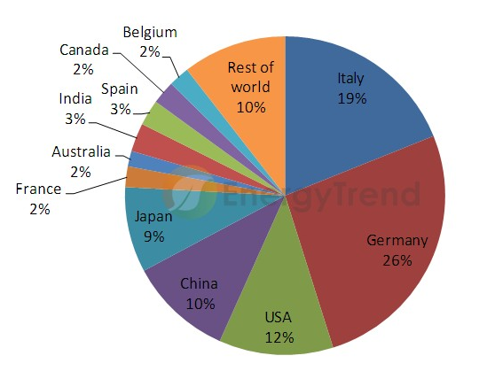 根據(jù)EnergyTrend的預(yù)估,2011年全球太陽能市場安裝量將來到19GW,但產(chǎn)業(yè)整體的庫存量(包括成品與半成品)將高達(dá)10GW左右,因此就產(chǎn)業(yè)鏈的供需狀況來看仍是處于嚴(yán)重供過于求。展望2012年,EnergyTrend預(yù)估全球市場需求量約維持在19GW左右,需求無法成長的主因在于歐洲市場的需求受到政策調(diào)整的影響,意大利、德國、英國等國的需求呈現(xiàn)下滑的態(tài)勢;另一方面,亞洲市場的需求受到政策的鼓勵(lì)而出現(xiàn)成長的狀況,但像中國、日本、馬來西亞、與泰國等,2012年的需求仍處于小幅成長的狀況,EnergyTrend預(yù)估至2013年市場才會出現(xiàn)強(qiáng)勁的成長。除此之外,北美與印度市場雖然受到矚目,但這二大市場仍有問題需求解決。在北美市場來看,美國市場受到Cash Grant法案將于2011年底到期的影響,2012年將以Tax Credit法案接手,然EnergyTrend認(rèn)為Tax Credit對于推升市場發(fā)展的力道有限,使得2012年美國市場處于混沌不明的狀況。而在印度市場方面,雖然National Solar Mission的推行讓印度市場具有龐大的潛在需求,但中央與地方政府的執(zhí)行效率與財(cái)務(wù)狀況,再加上在地自制率(Local Content Requirement)的推行,將是影響印度市場未來發(fā)展的不確定因素。