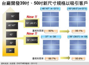 - 開發(fā)新尺寸面板成2012年面板商提升平均單價搶占市場的重要方向