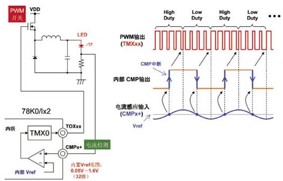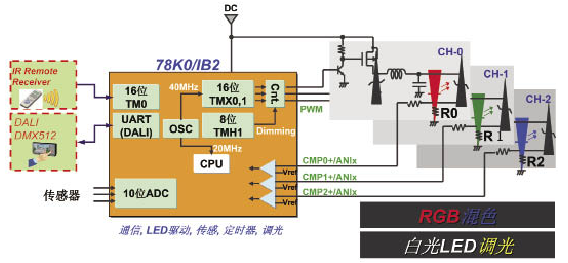 78K0/IB2低成本高亮度LED調(diào)光(調(diào)色)控制的優(yōu)點(diǎn):