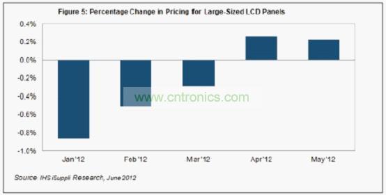 例如,在電視面板市場,關(guān)鍵的中國市場增長放緩,引發(fā)擔憂。中國五一假期銷售情況遜于預期,這是廠商可以指望刺激電視銷售的中國節(jié)假日之一。美國和歐洲電視市場也持續(xù)疲弱,給液晶面板銷售造成不利影響。但是,倫敦奧運會可能推動夏季電視銷售再度上升,從而刺激電視液晶面板出貨量上升。