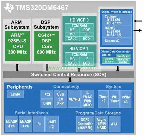 圖 3. 基于達芬奇技術(shù)的 TMS320DM6467 數(shù)字媒體處理器方框圖