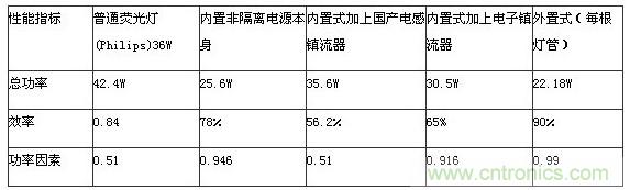 也就是說(shuō),直接替換的結(jié)果是效率大大降低,對(duì)于國(guó)產(chǎn)電感鎮(zhèn)流器,效率只有56.2%。只比普通熒光燈節(jié)電6.8W。 這使得LED日光燈的節(jié)電效能大打折扣,以致合同能源管理(EMC)難以執(zhí)行。