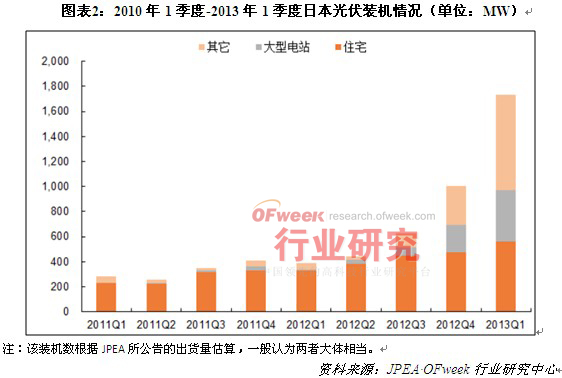 導(dǎo)讀: 根據(jù)日本經(jīng)濟(jì)貿(mào)易產(chǎn)業(yè)省公布數(shù)據(jù)顯示,2012年日本光伏新增裝機(jī)2.5GW,其中住宅項(xiàng)目為1.6GW,占比65%;2013年第一季度,日本新增裝機(jī)1.7GW。