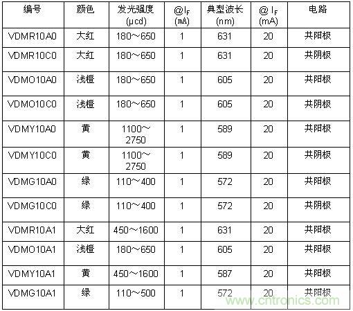 今天推出的器件采用發(fā)光均勻、無污點的數(shù)碼管和灰色封裝表面。VDMx10A1系列LED數(shù)碼管采用共陽極配置,封裝高度只有2.1mm。VDMx10x0系列器件提供共陽極和共陰極配置,封裝高度為3.75mm。