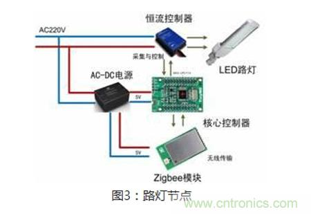 這是我們的一級終端,每個路燈節(jié)點由ZigBee無線模塊、核心控制板、光線及人流傳感器和LED燈組成。每個節(jié)點通過ZigBee接收命令,并實時匯報每盞路燈的亮、滅情況、實現(xiàn)亮度調節(jié)、傳送電能負荷狀態(tài)、完成燈桿損壞報警與漏電報警、接收來自ZigBee集中器的查詢命令、控制命令等。