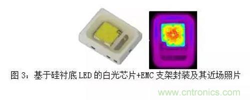 (3)垂直結構的芯片,不僅可以采用陶瓷封裝工藝,也可以采用更為廉價的支架封裝方式,進一步降低客戶的使用成本,如圖3所示,這為高品質照明提供了無限的可能。利用硅襯底LED芯片,可實現(xiàn)照明品質更佳、系統(tǒng)成本更低、設計方案更靈活、更具創(chuàng)新性的LED照明解決方案。