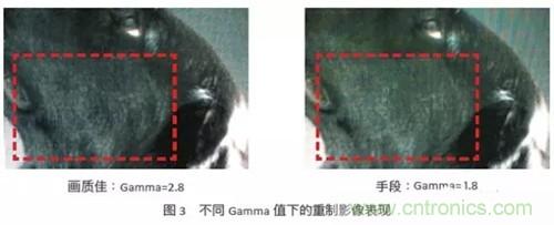 如果不采用提高LED順向電流的方式來掩蓋上述的缺點,另一種手段就是調(diào)整小點間距LED顯示屏的gamma曲線,灰階的亮度對于正確的影像重制是非常重要,因為在視訊源中亮度包含了大部份畫面數(shù)據(jù)。如圖3,右邊的圖像gamma值較小,代表中間色調(diào)的亮度太高,因此,整體畫面刷白又缺少深度,圖像上的細(xì)節(jié)損失不少,相較于左圖,右圖中的狗毛沒有那么有層次。