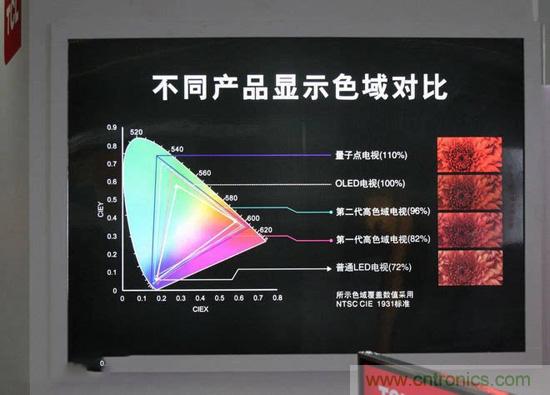 傳說中價格爆炸的OLED電視,色域據(jù)說能超過NTSC的范圍,OLED屏幕比普通LCD屏幕的優(yōu)勢之一也就在這里;而量子點(diǎn)電視的色域則據(jù)說可以超過現(xiàn)在的OLED電視(前不久發(fā)布的TCL量子點(diǎn)電視H9700官方稱其色域?yàn)?10%NTSC)。
