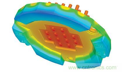 圖2. 熱模擬表明,這些芯片模塊顯示出良好的熱管理特性。(圖片來源:Future Facilities Limited)