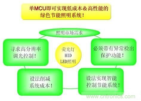 越來越多的照明控制方案出現(xiàn)在現(xiàn)在的照明工業(yè)中,因此電源的設計、燈的驅(qū)動電路、安全保護、管理接口等各方面都變得愈加靈活。目前,照明技術(shù)主要包括主流的熒光燈、LED燈和HID技術(shù)等,其廣泛應用使電源驅(qū)動的拓撲結(jié)構(gòu)差異非常大,從常見的Flyback、Buck、Boost以及延伸出來的其他結(jié)構(gòu)都在被大量使用,產(chǎn)品設計是否采用先進的數(shù)字節(jié)能控制設計,是否支持flyback、Buck、Boost等靈活的拓撲結(jié)構(gòu)應用,研發(fā)周期和投放市場時間的長短將決定產(chǎn)品的成敗,然而傳統(tǒng)的照明方案往往是采用專用器件來實現(xiàn)的,難以滿足快速發(fā)展的需求。