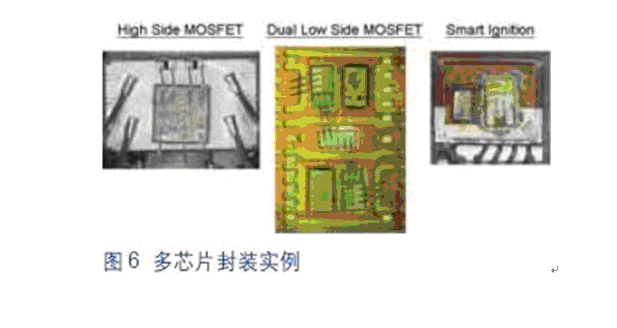 圖6所示為目前車載系統(tǒng)中采用多芯片封裝的幾個實例。這些智能化器件可以提供更高的系統(tǒng)性能監(jiān)控能力,通過集成保護功能提高功率系統(tǒng)的可靠性。如過流、過壓和過熱保護等功能都是這類產品的標配。當器件感測到有可能發(fā)生上述異常狀況時,能夠把功率MOSFET置于自我保護整個系統(tǒng)的環(huán)境中。此外,這些器件還集成有附加診斷功能,用以監(jiān)控負載開路或短路,有助于指導汽車機械裝置隔離和糾正車輛中出現(xiàn)的問題。