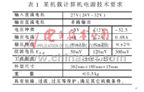 某機載計算機對電源部件的技術(shù)要求見表1。