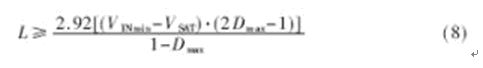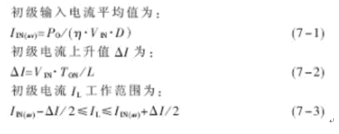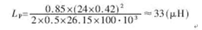 設(shè)PWM控制最大占空比Dmax=42%,如果初級繞組的電感量設(shè)計得大,則流過功率開關(guān)管和輸出濾波電容的電流峰值小,但由于電流上升斜率小,電路抗干擾能力差且功率開關(guān)管開通電流大;電感量小時,電流脈動大,沖擊電流大。因此設(shè)計電感電流工作在連續(xù)工作狀態(tài),輕負載時取額定功率的一半,由(2)式可知: