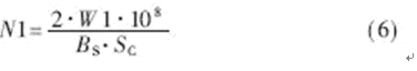 其中,BS為磁感應(yīng)強度,SC為脈沖變壓器磁芯有效截面積:BS=104Gs,SC=0.847cm2。則由(6)式可知: