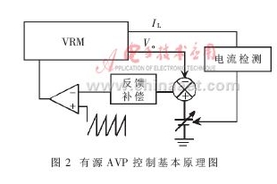 隨著VRM的深入發(fā)展,為滿足低電壓、大電流的需要,相繼提出了各種電路拓?fù)?,如帶抽頭電感的BUCK電路、有源鉗位的BUCK電路、耦合繞組的BUCK電路、移相軟開關(guān)BUCK電路等;并有優(yōu)良的控制方法問世,如V2控制、滯回控制等。以上的這些方法都甚是難以滿足電源模塊的發(fā)展需要。AVP的控制方法在適當(dāng)降低負(fù)載調(diào)整率的情況下有效地改善了模塊的動(dòng)態(tài)響應(yīng),在低電壓、大電流的應(yīng)用場(chǎng)合中被人們重新認(rèn)識(shí)。本文對(duì)其從理論方法進(jìn)行分析,并采用新的檢測(cè)方法通過實(shí)驗(yàn)證明了AVP良好的動(dòng)態(tài)調(diào)節(jié)能力。