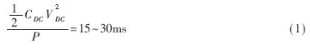 根據(jù)所選擇的電壓等級,直流側(cè)電容電壓等級選定為450V。其容量則一般使用如下經(jīng)驗公式進行計算: