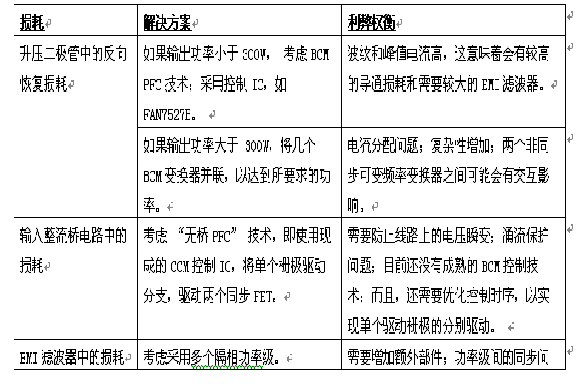 采用有源FPC技術(shù)的電源市場明顯比通用的AC-DC市場成長更快;市場對效率更高的變換器的需求已經(jīng)增加。然而,提高效率并不是沒有代價的,必須在成本、部件數(shù)、可靠性和新技術(shù)之間權(quán)衡考慮 (見表1)。仔細(xì)選擇部件,并結(jié)合新的控制技術(shù)和更優(yōu)化的工程手段,就可顯著提高PFC變換器的效率。