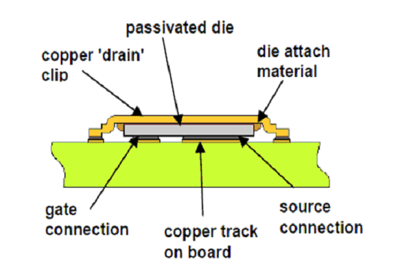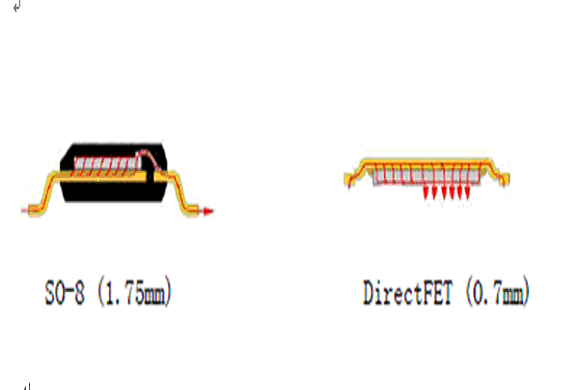 傳統(tǒng)的MOSFET使用引線鍵合來(lái)實(shí)現(xiàn)硅片和管腳框架之間的電連接,而DirectFET,將接觸面的數(shù)目和傳導(dǎo)路徑的長(zhǎng)度減到最小從而減小了傳導(dǎo)損耗。