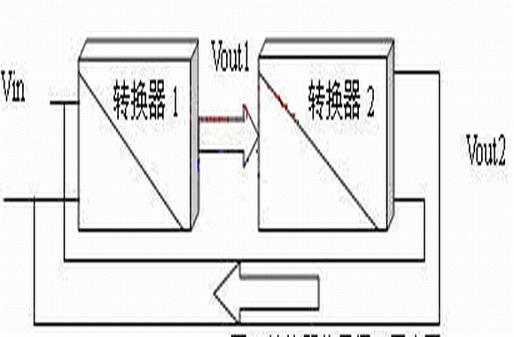 要實現(xiàn)節(jié)能循環(huán)利用,主要考慮將消耗在電阻負載上的能量更加合理的利用。如果能將輸出電壓Vout再還原為輸入電壓Vin,則輸出電能轉(zhuǎn)換為輸入的電能,便可以實現(xiàn)電能的循環(huán)利用,如圖2所示:將原有轉(zhuǎn)換器的電阻負載R1用等效輸入阻抗的轉(zhuǎn)換器2取代,轉(zhuǎn)換器2的輸出接轉(zhuǎn)換器1的輸入。則與R1等效輸入阻抗的轉(zhuǎn)換器2從轉(zhuǎn)換器1輸出端消耗的能量被轉(zhuǎn)換到轉(zhuǎn)換器1的輸入端,再經(jīng)轉(zhuǎn)換器1又到轉(zhuǎn)換器2的輸入端,實現(xiàn)了能量的循環(huán)利用。如果在理想情況下,沒有轉(zhuǎn)換損耗,則系統(tǒng)可以自循環(huán)工作。當然這是無法實現(xiàn)的,所以在能量分析時,要引入轉(zhuǎn)換過程的消耗。