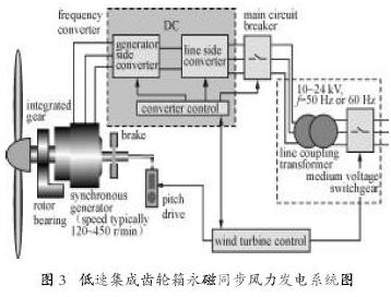 c.集成低速齒輪箱的永磁機(jī)風(fēng)力發(fā)電系統(tǒng)