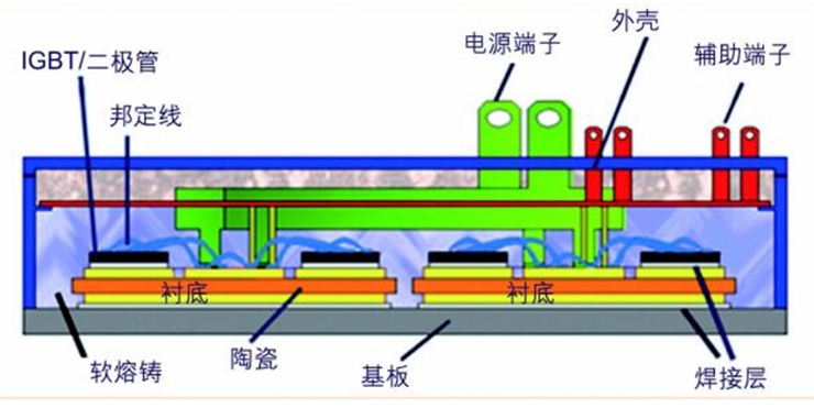 圖1:包括基板在內(nèi)的IGBT模塊構(gòu)架示意圖