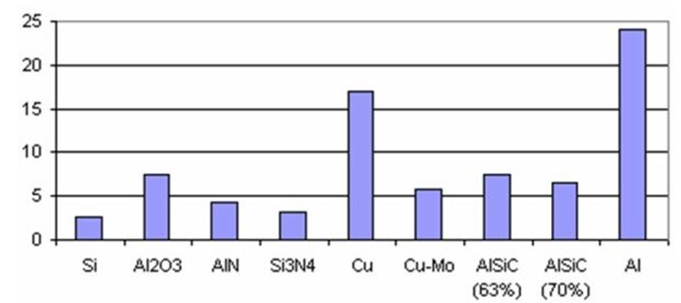 圖2:不同材料的熱膨脹系數(shù)(CTE)(ppm/K)