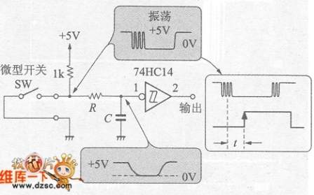 數(shù)字電路是不希望振蕩的。使用觸發(fā)電路原理上也是防止振蕩影響的電路,簡(jiǎn)草的防止對(duì)策就是組合RC低通濾波器和施密特觸發(fā)電路。