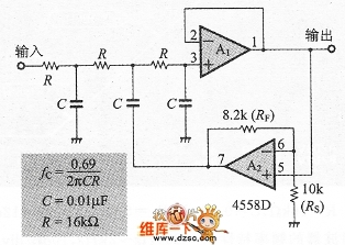 圖2由同一常數(shù)構(gòu)成的-18dB/oct的低通濾波器