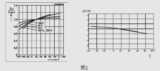 鋁電解電容器在容量偏差由于其固有的材料、結(jié)構(gòu)特性的影響,在額定電容量及容量溫度穩(wěn)定性方面偏差較金屬化電容器有較大的差距:鋁電解電容器由于無法控制鋁極板氧化面積致使容量無法準(zhǔn)確控制,而金屬化電容器產(chǎn)品可以通過直接控制極板面積精確控制產(chǎn)品電容量,偏差可以控制在-2%~+2%之間,對線路的精確性提供了可靠的保證。由于金屬化膜電容器中絕緣介質(zhì)材料為高分子聚合物(聚丙烯、聚酯等)薄膜,可以通過控制薄膜厚度(精度在0.2微米以上)來提高電容器產(chǎn)品的額定電壓,而鋁電解電容器由于絕緣介質(zhì)是鋁箔表面的氧化鋁層,難以控制氧化層厚度及均勻性,所以難以達(dá)到高的耐壓及過壓倍數(shù)。鋁電解電容器額定電壓較低(通常≤450V DC),而金屬化電容器產(chǎn)品應(yīng)用于GVF系列高壓變頻器上的直流濾波電容器單臺(tái)額定電壓已經(jīng)達(dá)到20000V DC 。該公司原來使用52段鋁電解電容器串連使用,非常煩雜,采用金屬化膜電容器大大節(jié)省了在鋁電解電容器串連過程中煩雜的均壓工作,節(jié)約了材料及人工成本,提高了效率。這種新型金屬化電容器額定紋波電流可以達(dá)到同等容量鋁電解電容器額定紋波電流的幾倍到幾十倍,而且鋁電解電容器過流能力只有1.1IN ,金屬化電容器過流能力可以達(dá)到1.3 IN,從而避免了在中大功率系統(tǒng)中,為達(dá)到系統(tǒng)額定電流而增大鋁電解電容器并聯(lián)數(shù),犧牲容量而造成的不必要的浪費(fèi),尤其是針對急劇的電壓變化(高DV/DT)需要電容器提供瞬時(shí)大電流加以電壓支撐或吸收時(shí),鋁電解電容器幾乎可以說沒有作用,當(dāng)負(fù)載電機(jī)工作在四象限工況下時(shí),逆變橋工作在整流狀態(tài)下需要電容器提供損失電能吸收時(shí),金屬化膜電容器較鋁電解電容器優(yōu)勢非常明顯。同時(shí)電容器容抗是隨著頻率的變化呈反比例關(guān)系出現(xiàn)的,而電容器的有功損耗是隨著電流的增大而增大,且為電流平方成正比關(guān)系,所以電容器的損耗則成為在電容器運(yùn)行過程中安全可靠的至關(guān)重要的因素。電容量溫度穩(wěn)定性參照圖1所示,金屬化電容器容量溫度變化率僅為鋁電解電容器的10%左右,且金屬化電容器的損耗僅為鋁電解電容器的1%左右,發(fā)熱量小溫升低,從而進(jìn)一步保證了系統(tǒng)的穩(wěn)定性。