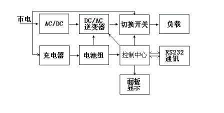 圖1 為在線式UPS 的主電路,在線式UPS 電源具有獨立的旁路開關(guān)、AC/DC 整流器、充電器、DC/AC 逆變器等系統(tǒng),工作原理是:市電正常時AC/DC 整流器將交流電整流成直流電,同時對蓄電池進行充電,再經(jīng)DC/AC 逆變器將直流電逆變?yōu)闃?biāo)準(zhǔn)正弦波交流電,市電異常時,電池對逆變器供電,在UPS 發(fā)生故障時將輸出轉(zhuǎn)為旁路供電。在線式UPS輸出的電壓和頻率最為穩(wěn)定,能為用戶提供真正高質(zhì)量的正弦波電源。