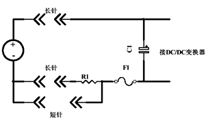 這種方法的缺陷是插入的速度不能控制,如插入速度過快,電容C1還沒充滿電時(shí),短針就已經(jīng)接觸,沖擊電流的限制效果就不好。
